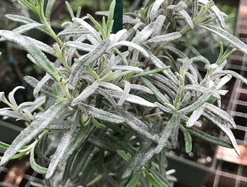 Powdery mildew on Rosemary. Photo credit: Aaron Palmateer |